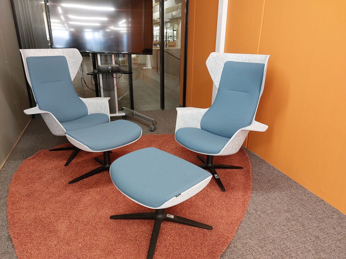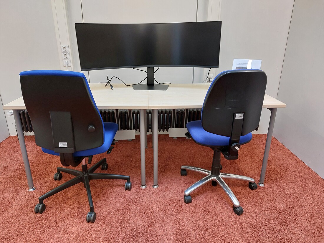 - An zwei unserer Arbeitsplätze stehen Curved Monitore für Sie bereit. Sie erleichtern zum Beispiel die Gruppenarbeit und die Ansicht mit kleinen Laptops.