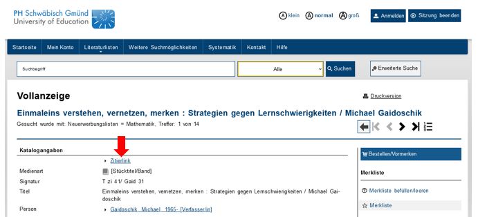 OPAC: Funktion „Zitierlink“