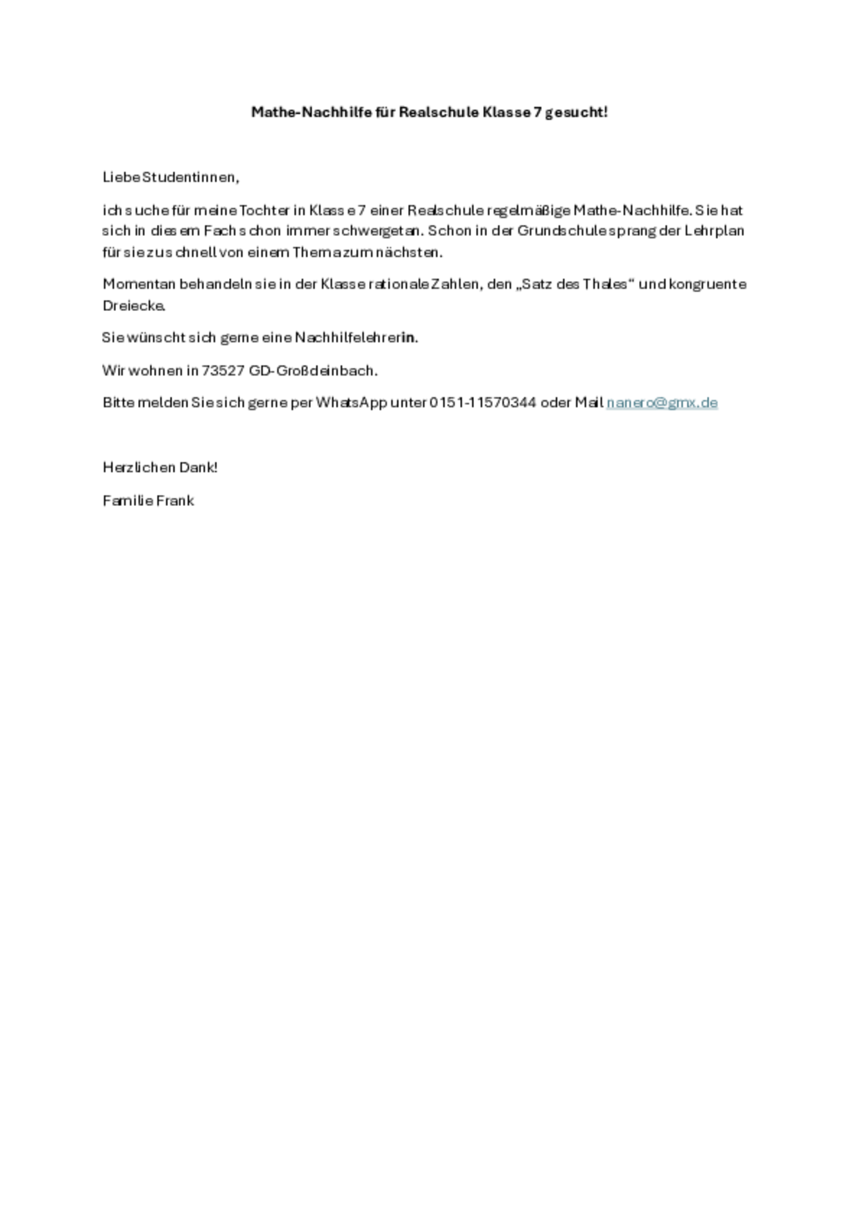 Bitte meldet euch bei uns, falls Jobs bereits vergeben sind, dann nehmen wir die Anzeigen raus. Vielen Dank für eure Unterstützung!