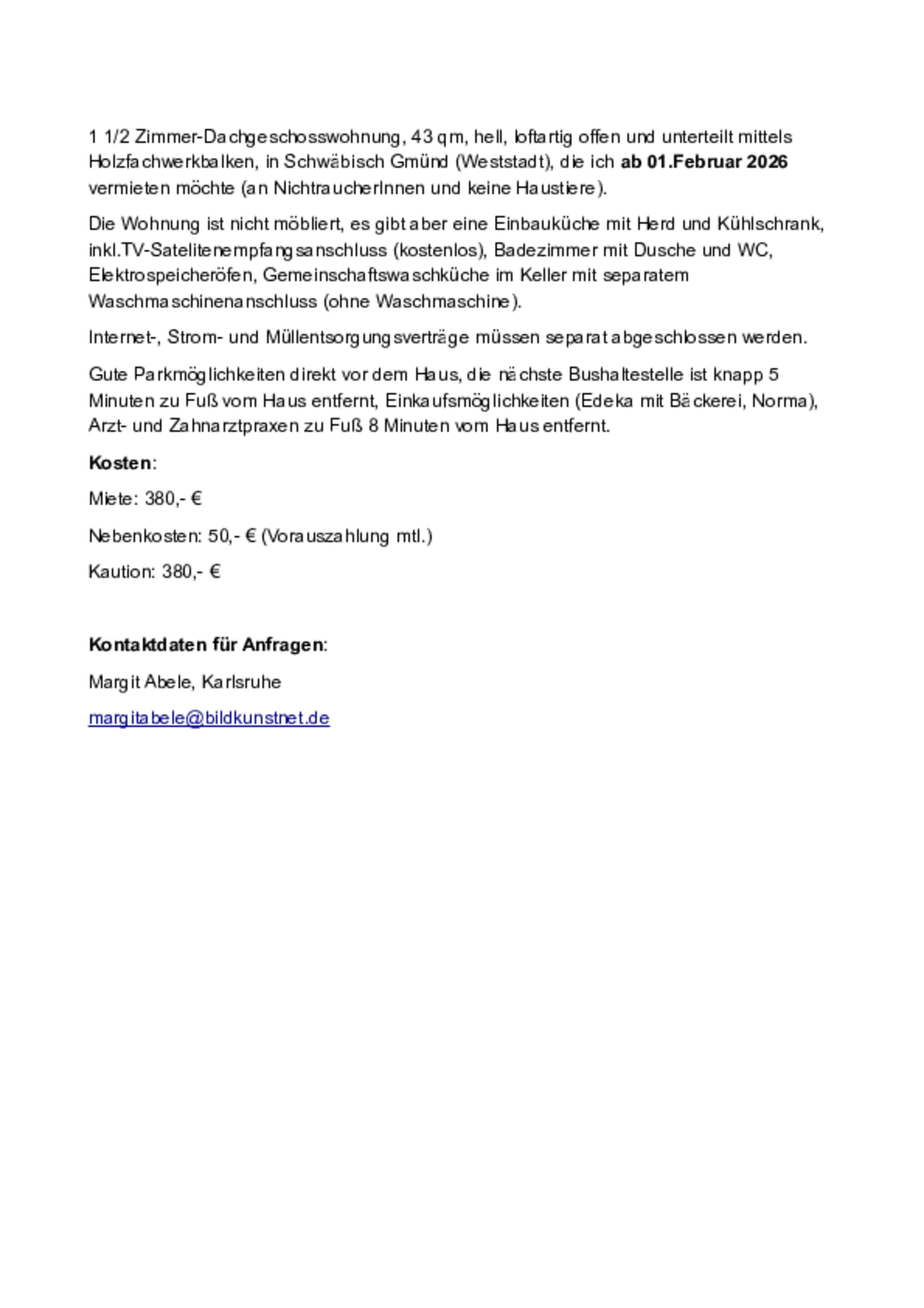 Möchtet ihr eine Wohnung einstellen, schickt uns eine Email mit allen Infos an asta@ph-gmuend.de