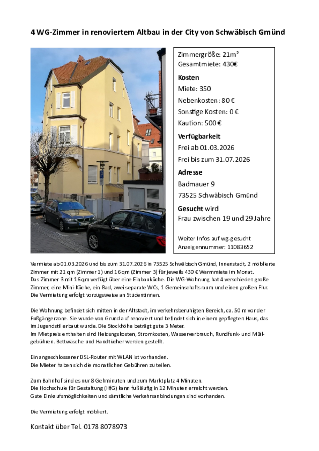 Bitte meldet euch bei uns, falls Wohnungen bereits vergeben sind, dann nehmen wir die Anzeigen raus. Vielen Dank für eure Unterstützung!